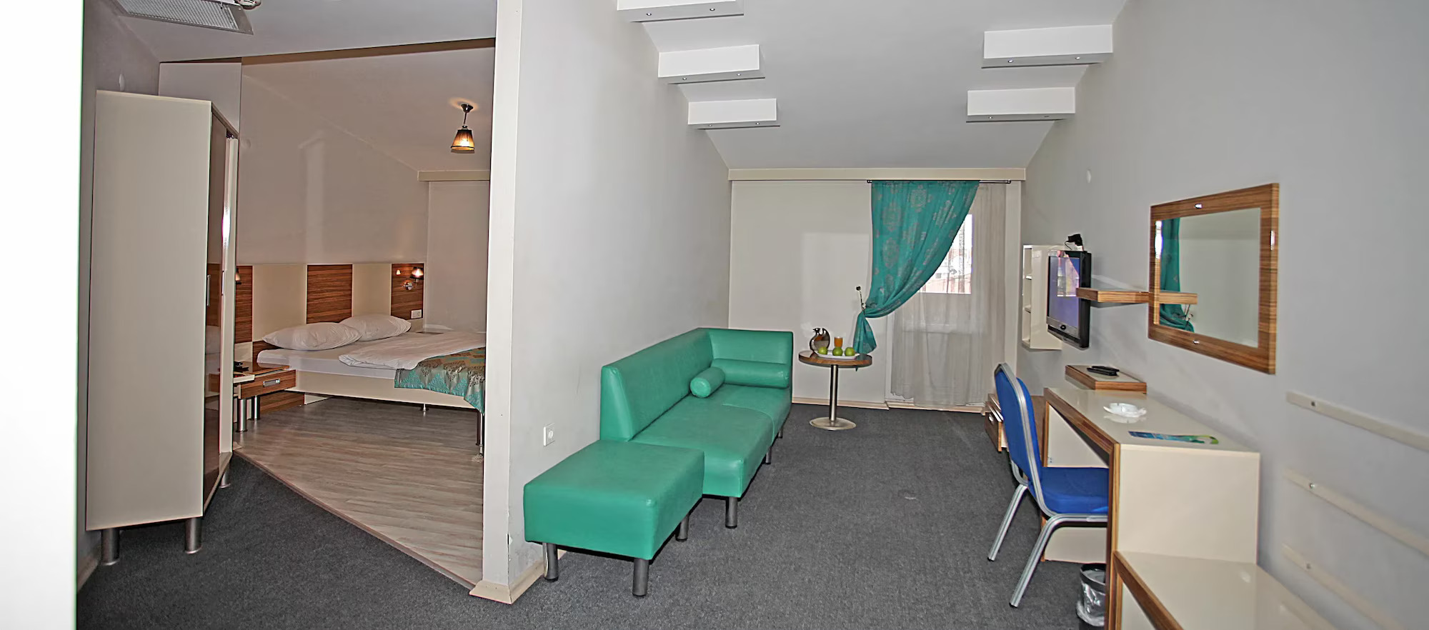 Klima ,Minibar ,Telefon ,Masa ,Ayrı oturma alanı ,Oda servisi ,Terlik ,Uydu TV kanalları ,Isıtma ,Elektrikli su ısıtıcısı ,Banyo ,Duş ,Tuvalet Malzemeleri ,Havlu Menüsü ,TV ,Sigara İçilmeyen Oda ,Tuvalet ,Gardırop/Dolap